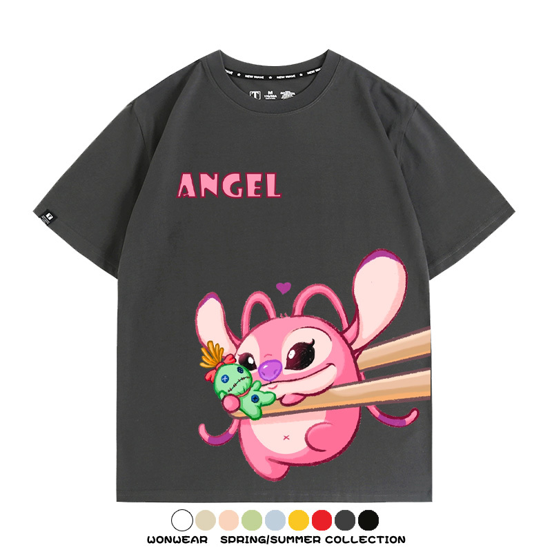 史迪奇仔粉色安琪Q彈情侶裝卡通上衣服夏動漫周邊短袖t恤衫男半袖