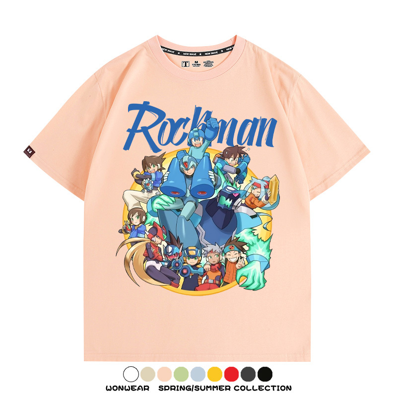 洛克人聯名動作電子遊戲夢露t恤衫周邊短袖剪刀人上衣服夏半袖男