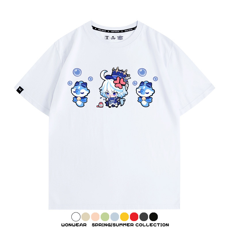 原神遊戲水神芙寧娜芙卡洛斯Q版可愛周邊短袖夏季純棉男潮T恤百搭