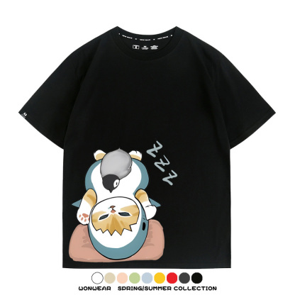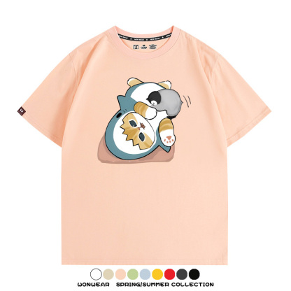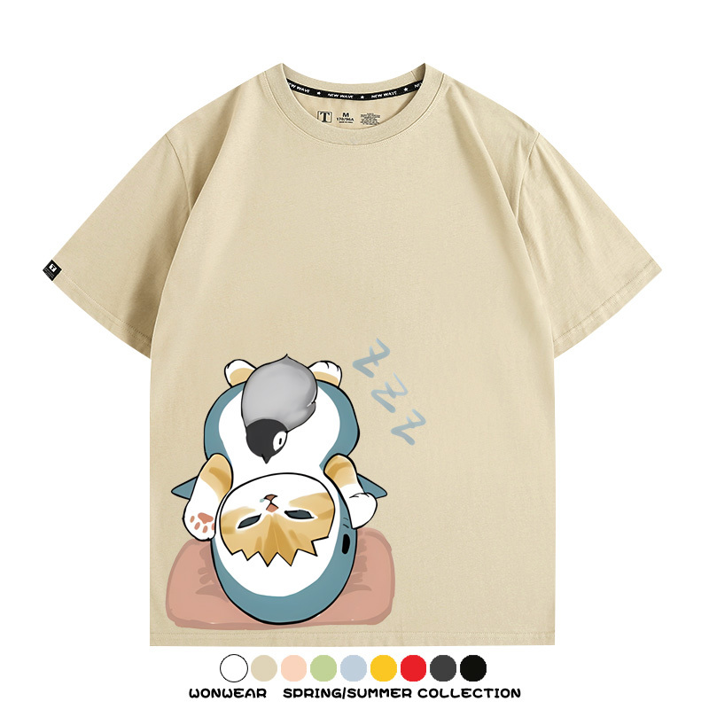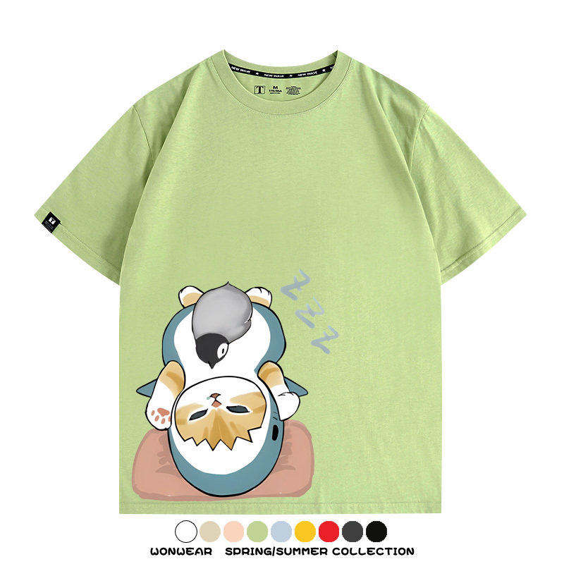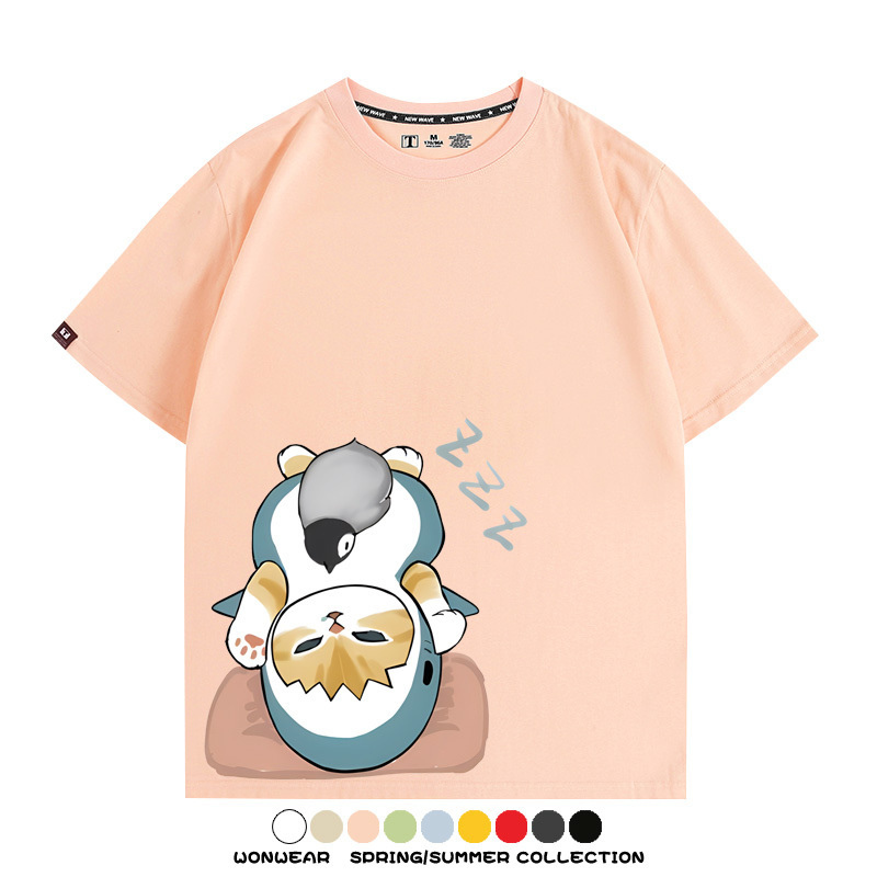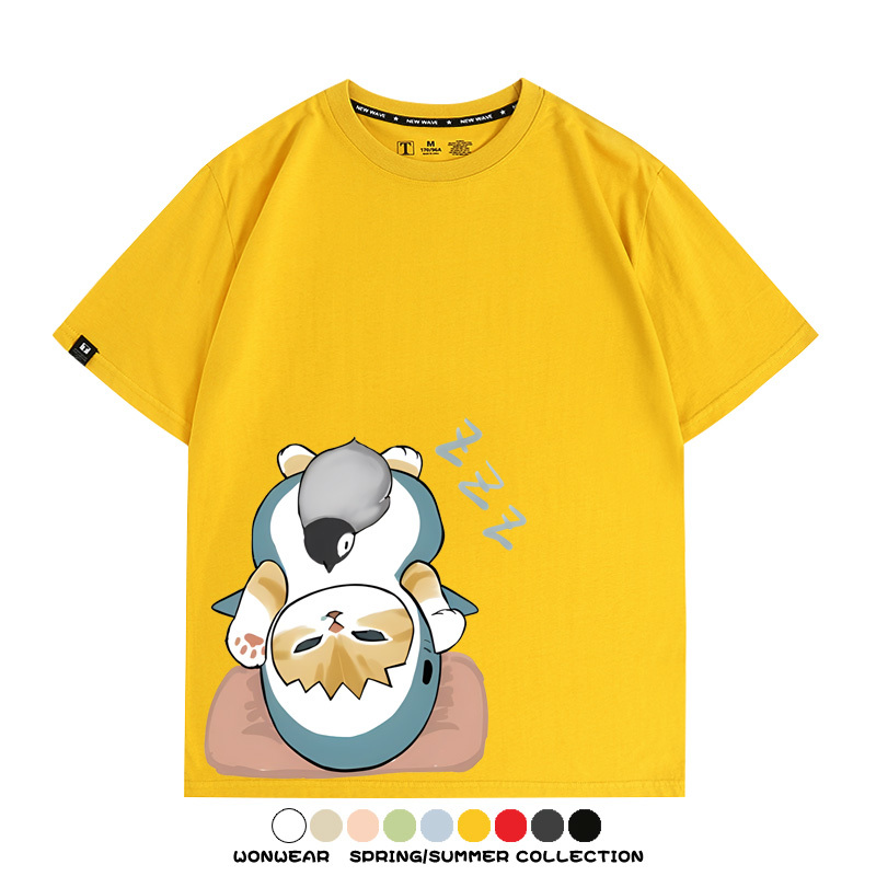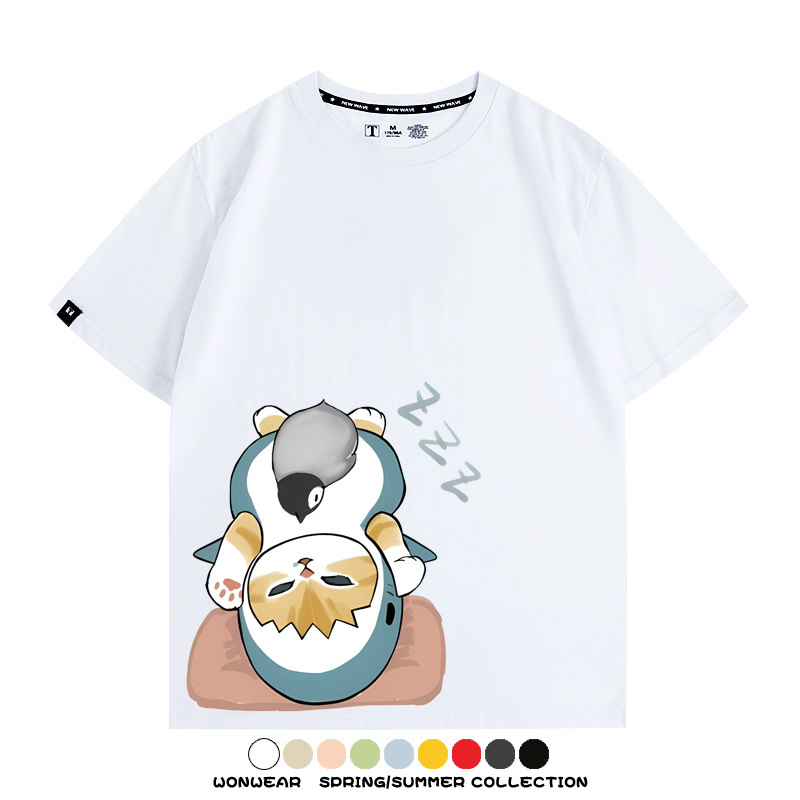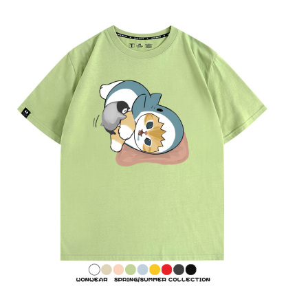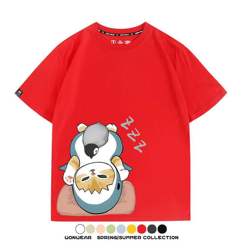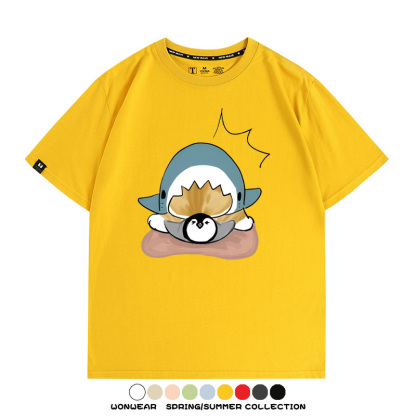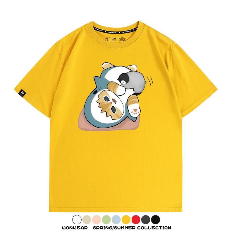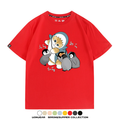 日系貓福珊迪鯊魚COS可愛企鵝鏟屎官情侶短袖純棉夏季寬鬆百搭T恤上衣